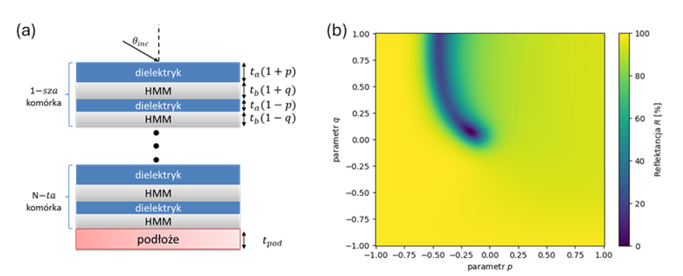 Niniejsza praca jest poświęcona właściwościom optycznym hiperkryształów fotonicznych, emulujących nietrywialność topologiczną w syntetycznej przestrzeni parametrów geometrycznych (p i q), a także możliwością ich zastosowania w powierzchniowych czujnikach optycznych. W szczególności, analiza obejmuje wpływ typu dyspersji struktury HMM na zmianę odpowiedzi optycznej struktury w obecności rozważanych analitów.