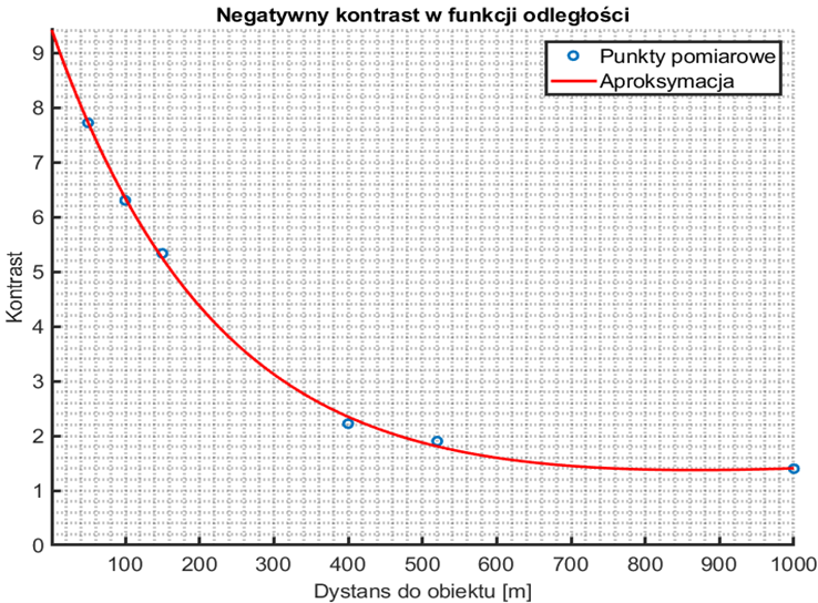 Powszechnie stosuje się systemy działające w zakresie promieniowania podczerwonego -IR. Relatywnie nową metodą wykrywania i śledzenia obiektów jest pasywna metoda negatywnego kontrastu w zakresie promieniowania ultrafioletowego - UV. Polega ona na analizie zmian w rejestrowanym sygnale tła promieniowania UV w wyniku pojawienia się obiektu w polu widzenia sensora optycznego. Dokonano analizy czułości i zasięgu detekcji, a możliwości detekcyjne sensora wykorzystującego tę metodę przedstawiono na rys. 1. Skonstruowano stanowisko pomiarowe, które umożliwiło przeprowadzenie badań weryfikujących założenia teoretyczne. Wyniki tych badań potwierdzają skuteczność proponowanego podejścia, co czyni je obiecującym rozwiązaniem dla przyszłych aplikacji w szczególności w systemach monitorowania i bezpieczeństwa.